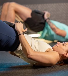 Our Core class has a mix of weighted and bodyweight ab training. You'll do exercises like crunches, sit-ups, planks, mountain climbers and much more, focusing on both deep and surface muscles.