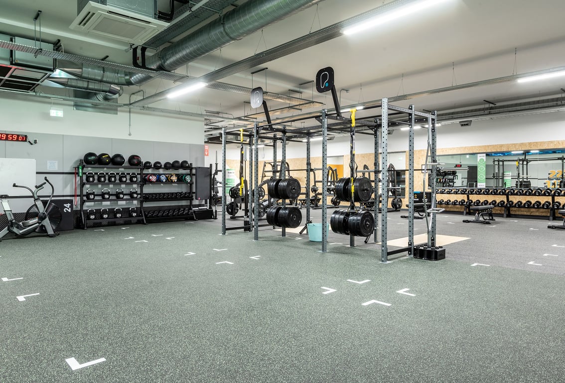 The gym has a large free weights area, a functional workout zone for that all body workout, resistance equipment, an enclosed studio for classes, a stretch area and loads of cardio kit.