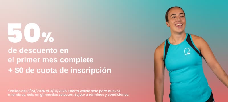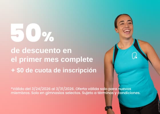 50% de descuento en el primer mes completo + $0 de cuota de inscripción. Solo en gimnasios selectos.